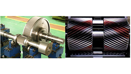 We are able to secure a precision level of DIN3 and above for the many teeth of the gear by grinding the gear surface of the high acceleration cylinder gear with a grinder. This allows smooth movements of the gear even at a peripheral speed of 100m/s or higher. The gears are used in equipment requiring fast rotations, like a compressor or power generator.